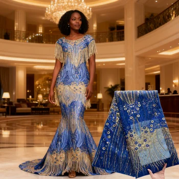 African Sequined Lace Fabric 2024 High Quality French Lace Fabric Nigerian Luxurious Tulle Dress for Women Wedding Party 3490