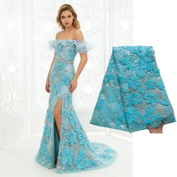 African Sequined Lace Fabric 2024 High Quality French Lace Fabric Nigerian Luxurious Tulle Dress for Women Wedding Party 3490