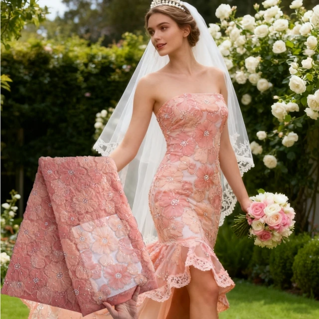 3895 Latest African Brocade Lace Fabric French Damask Gilding Lace Nigerian Jacquard Brocade Fabric for Women Gown Dresses
